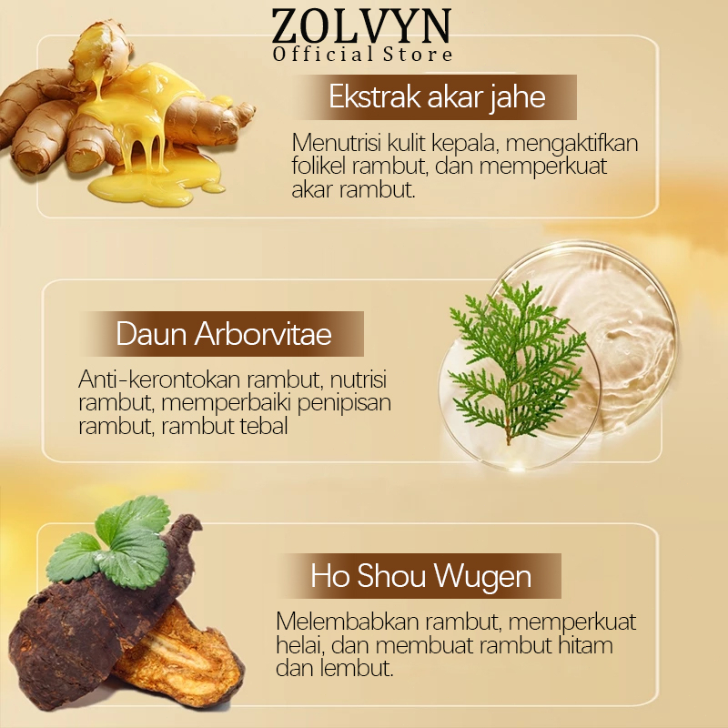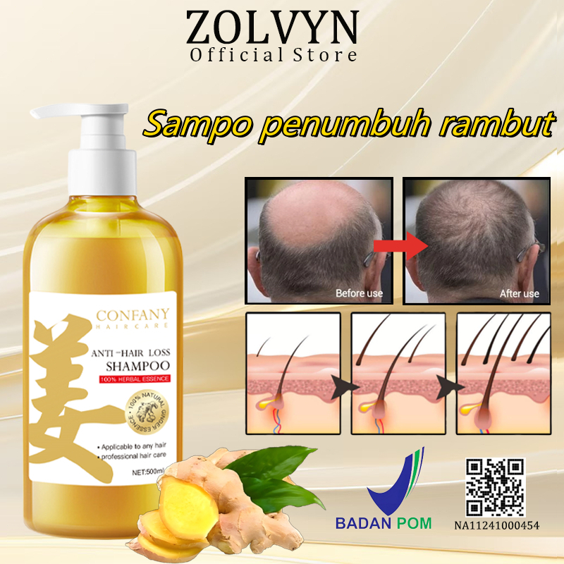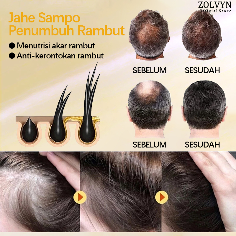 ZOLVYN Shampo Penumbuh Rambut Cepat shampoo rambut rontok dan ketombe Ginger Shampoo Shampoo Anti Rontok Shampo Jahe Per
