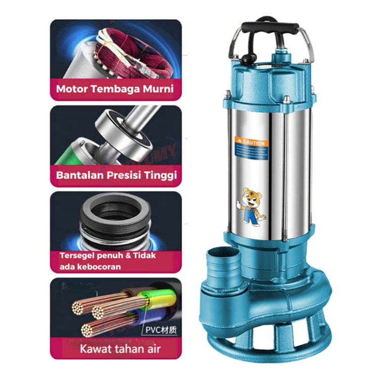 Pompa Celup Air Kotor Bersih WQD68-400W Stainless 1.5inch Pompa Lumpur Pompa Air Tenaga Kuat
