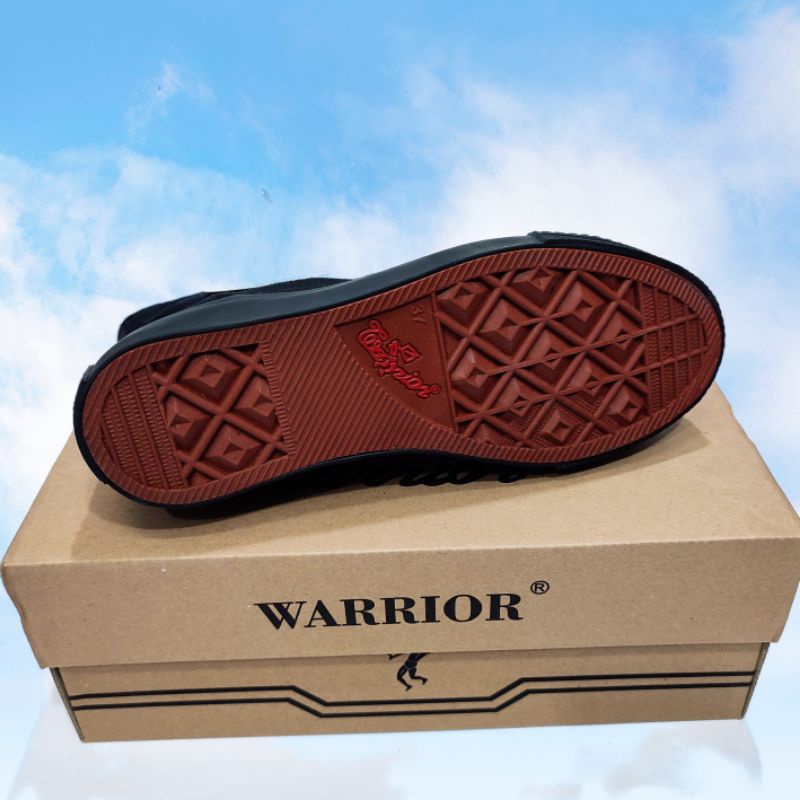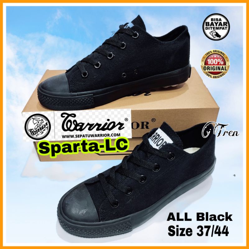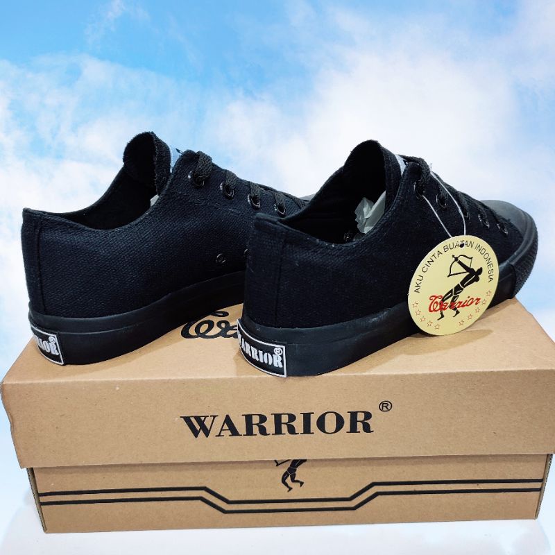 WARRIOR Sepatu Sekolah Kuliah Hitam Polos Pendek Tali Warior Sparta Low All Black Original Size 37-44