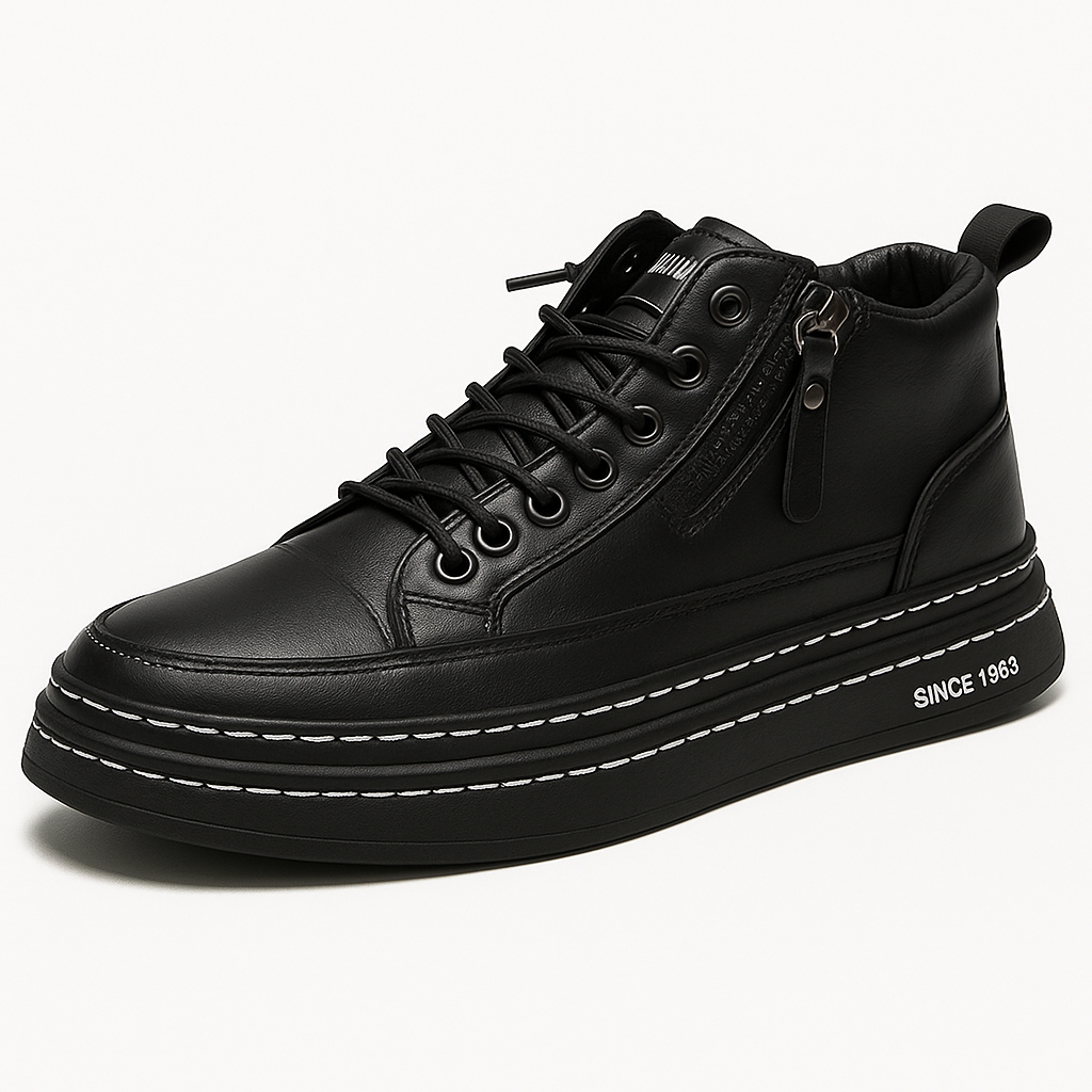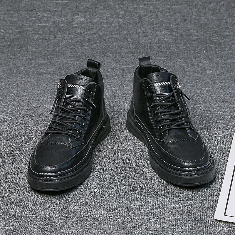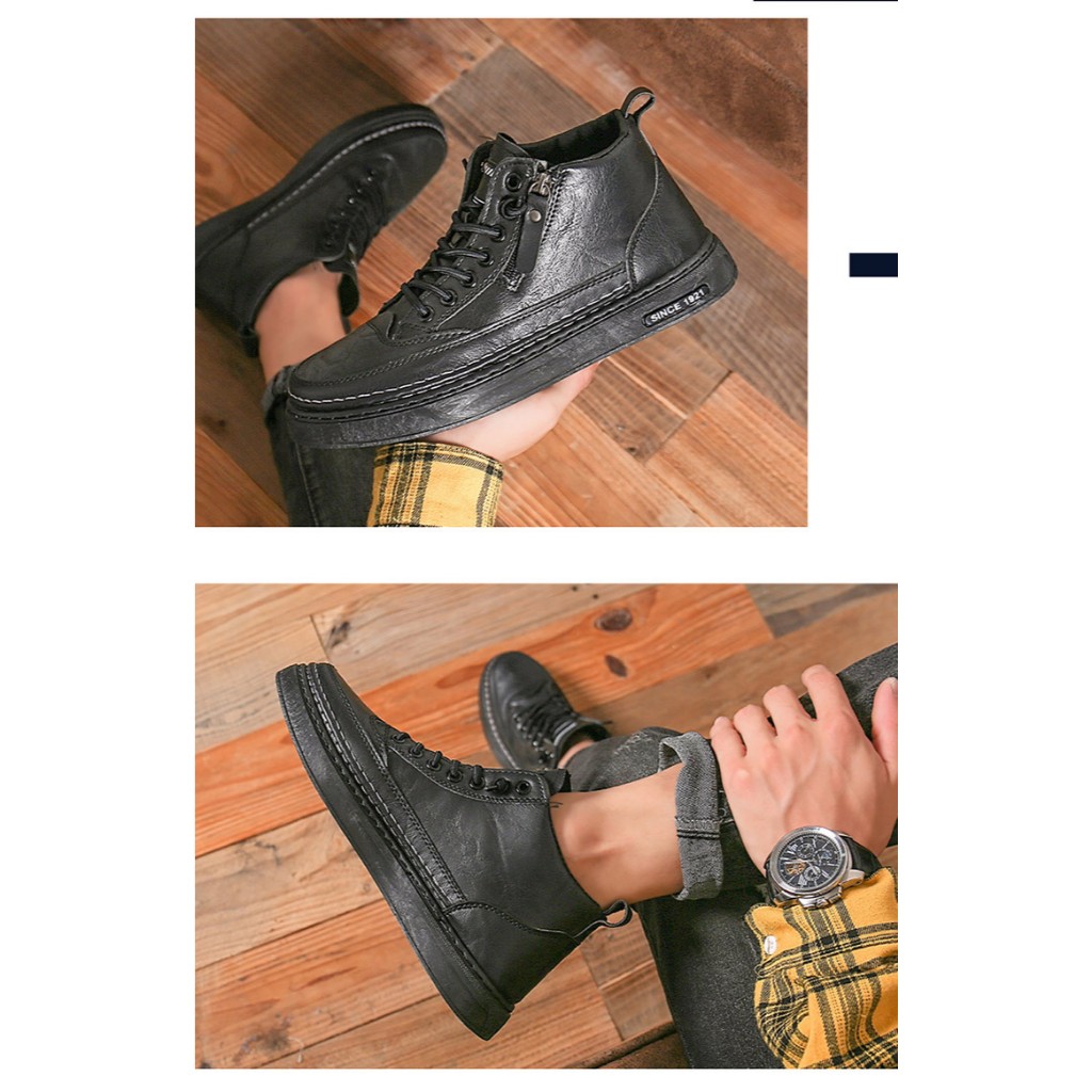 Luckyfanstore Sneakers Pria Boots Leipzig Hitam Zipper Kausal | sepatu kerja hitam - D24