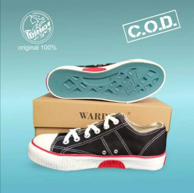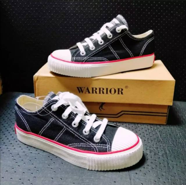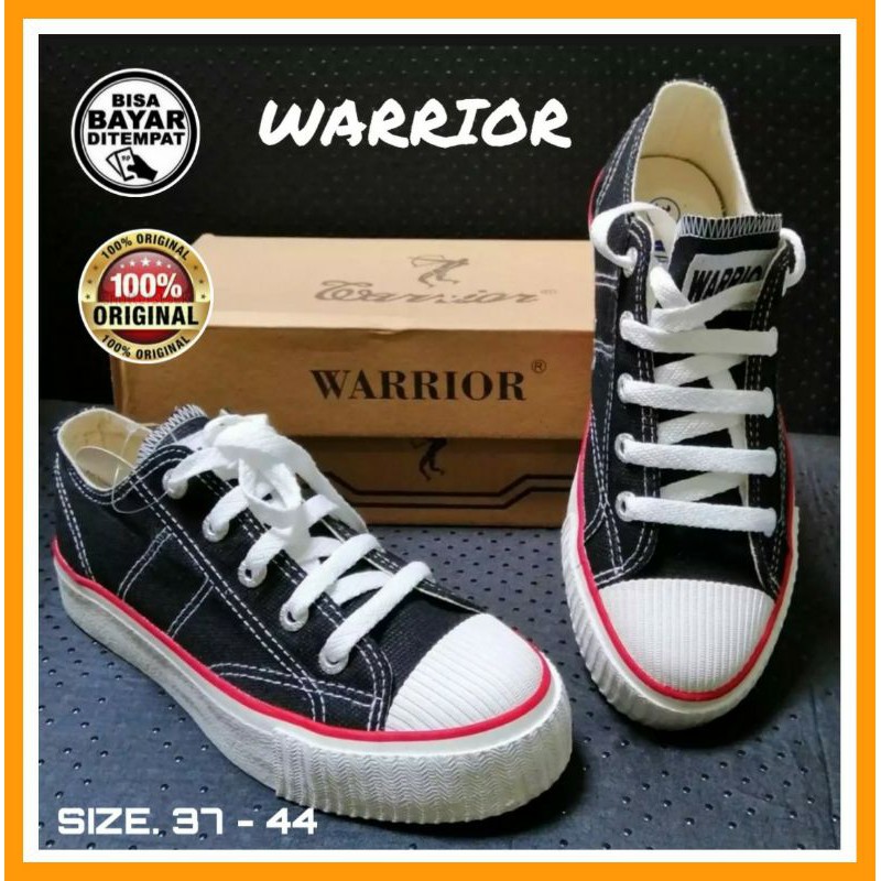 WARIOR Sepatu Sekolah Kuliah Cowok Cewek Warrior Classic Low Lc Pendek Keren Kekinian Hitam Putih Black White Size 37 sd 44 Berkualitas