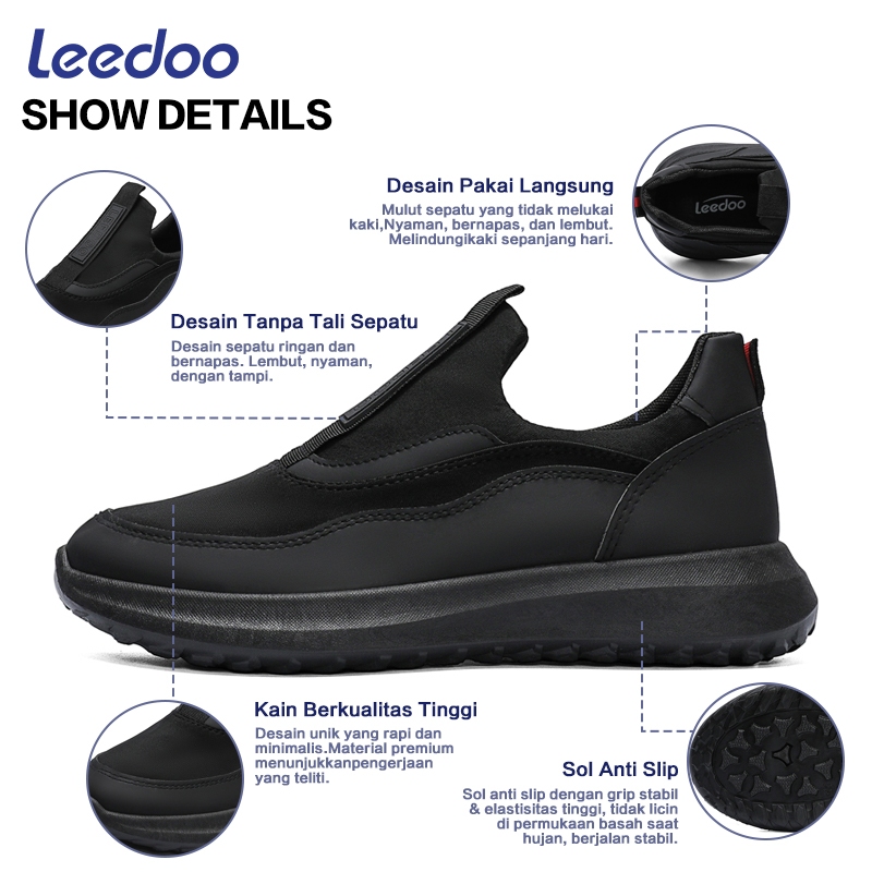 Leedoo Sepatu Sneakers Cowok Causal Slip On Pria Pria Kekinian Fashion Sepatu Hitam MR713
