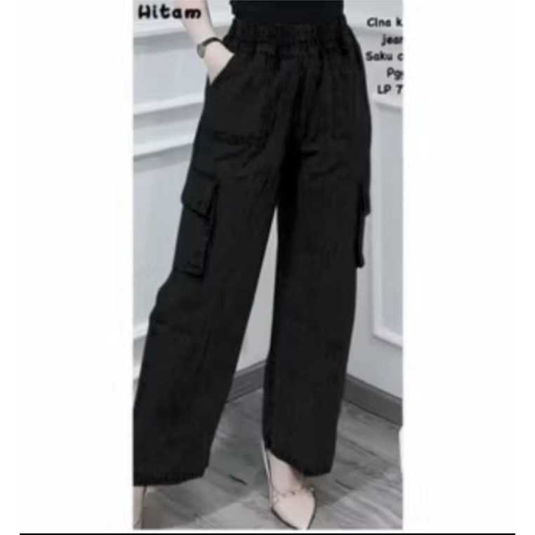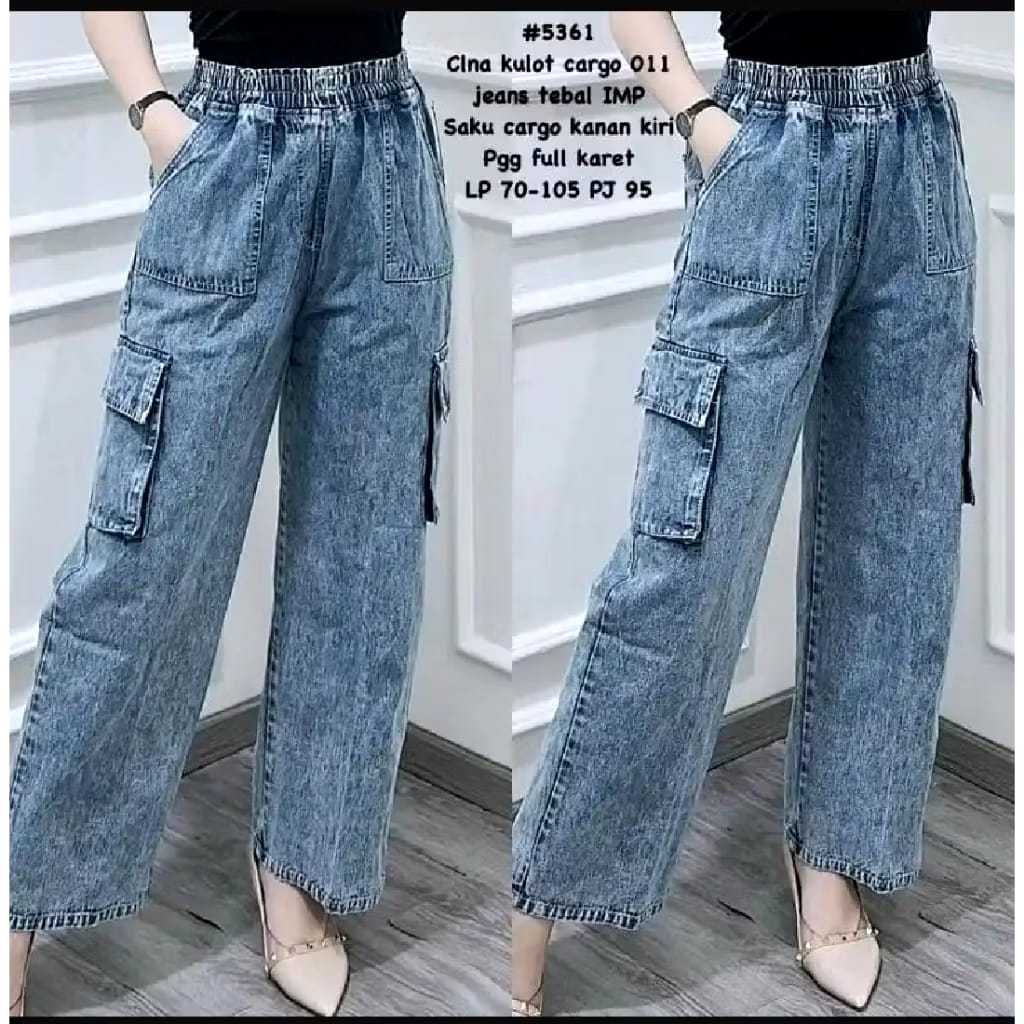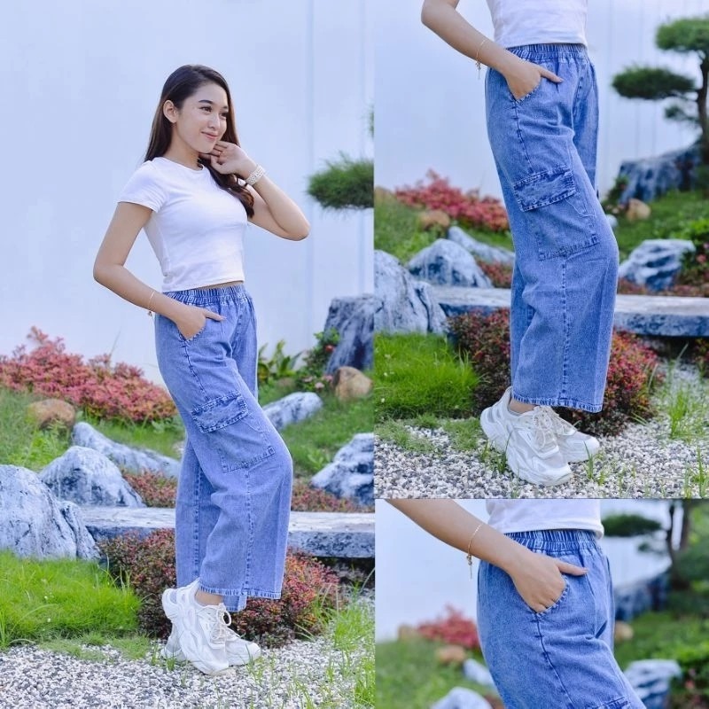 CELANA KULOT KARGO WANITA PANJANG FULL KARET TERBARU,CELANA KULOT JINS SNOW BLUE WANITA KEKINIAN