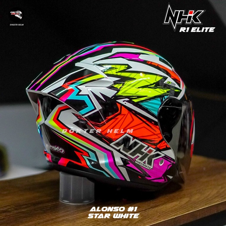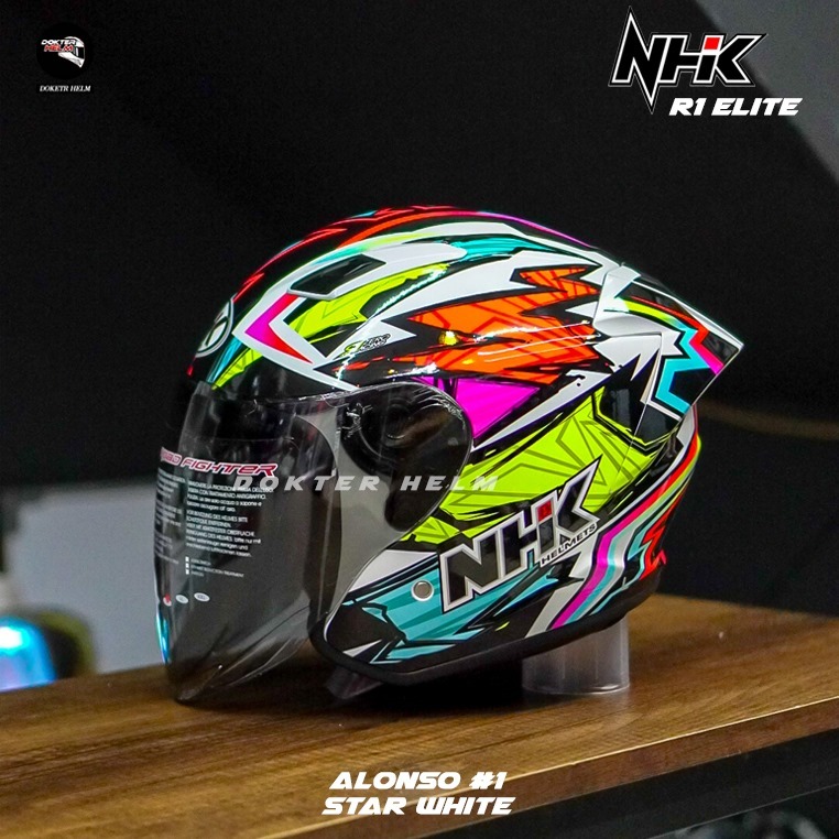NHK R1 ELITE RIDER REPLIKA ALONSO #1 STAR WHITE ORIGINAL | HELM MOTOR HALF FACE R ONE ELIT MOTIF GP EDITION