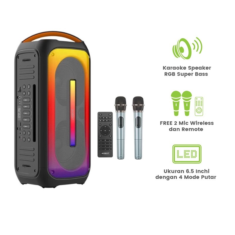 ROBOT Speaker Karaoke 50W Dual Microphone Wireless RGB Light Bluetooth 5.0 Speaker Bluetooth 6.5 Inchi RB650 Original -