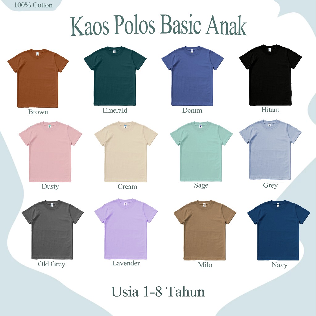 COTTON 24s KAOS POLOS ANAK PREMIUM 2-10th | KAOS ANAK PRIA WANITA