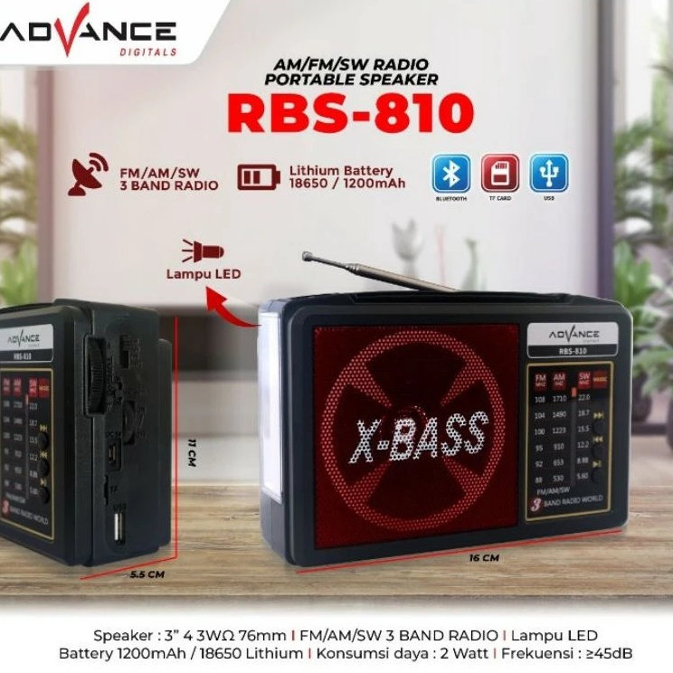 Advance RBS-810 Portable Speaker Radio 3 Band Radio FM/AM/SW Garansi Resmi 1 Tahun
