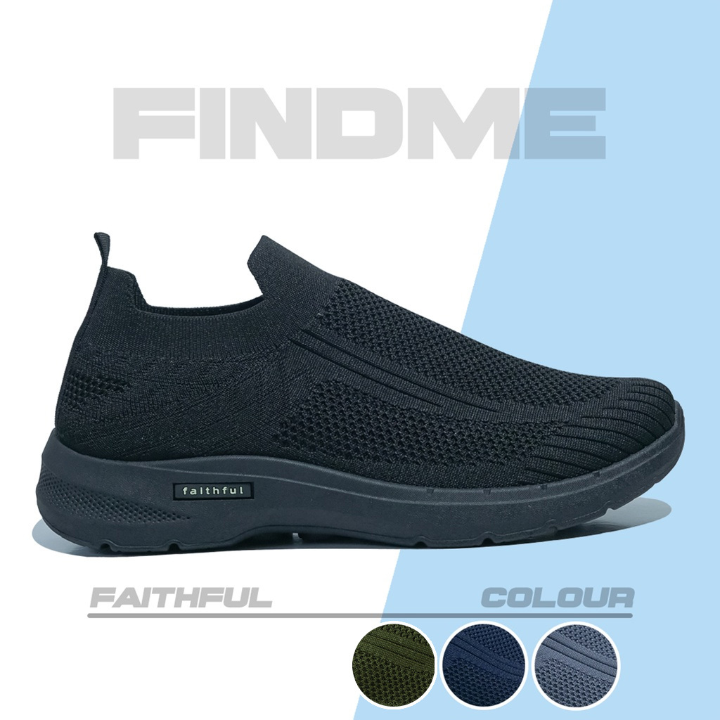Sepatu Pria Sneakers FINDME Design Polos Casual Logo Keren Comfy Bahan Flyknit Import Faithful