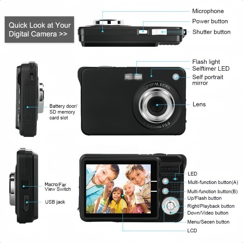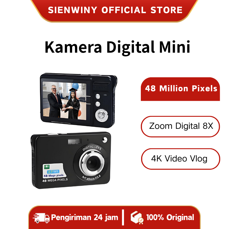 【SIENWINY】Kamera digital retro HD Digicam Kamera Pocket 48MP Kamera Kamera digital pocket ORIGINAL FULL SET 48MP Layar LCD 2,7 Inci Zoom 8x Tangkap Senyuman Anti-guncang dengan Baterai kartu SD