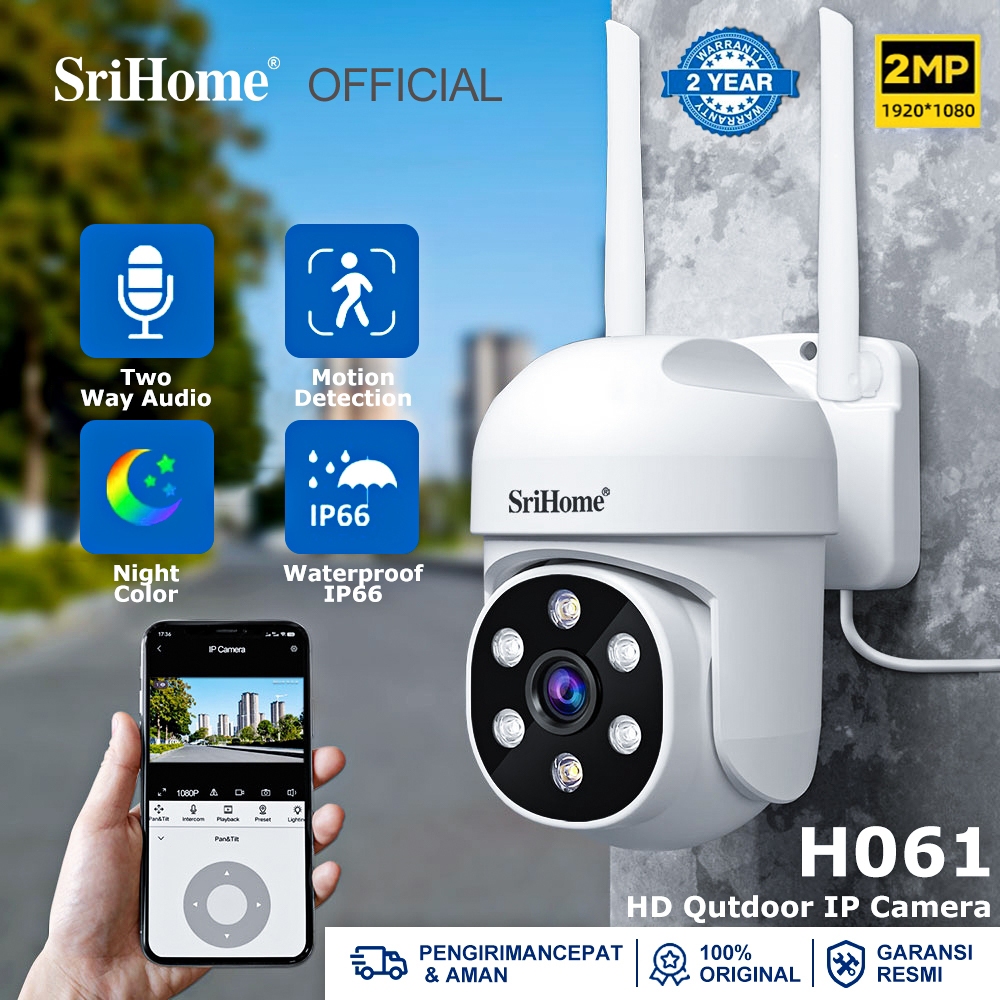 Srihome H061 CCTV Outdoor Wifi 2MP FHD IP66 Waterproof 360 PTZ Jarak Jauh Lewat HP Garansi 2 Tahun
