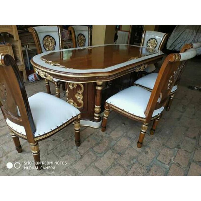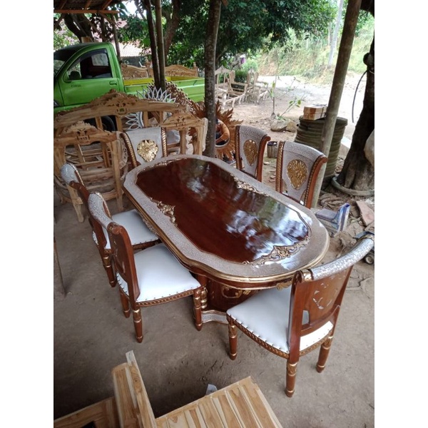 Set meja makan Salina kursi 6+meja kayu jati