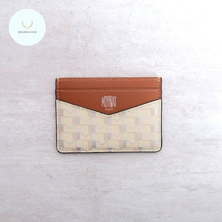 Moynat Oh Card Holder Canvas / Leather in Carbon / Silver Cognac Bronze Green