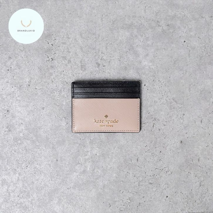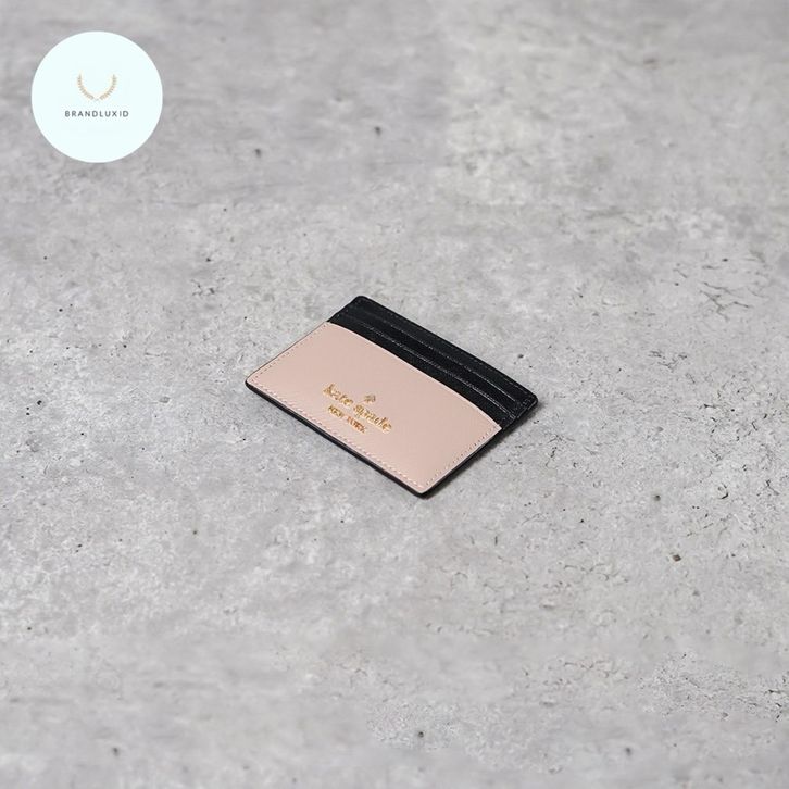 Kate Spade Gold Black Card Holder in Nude