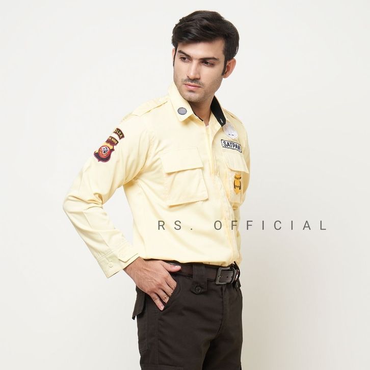 Baju Security RS_OFFICIAL || seragam pdl satpam resleting tangan panjang kerah hitam