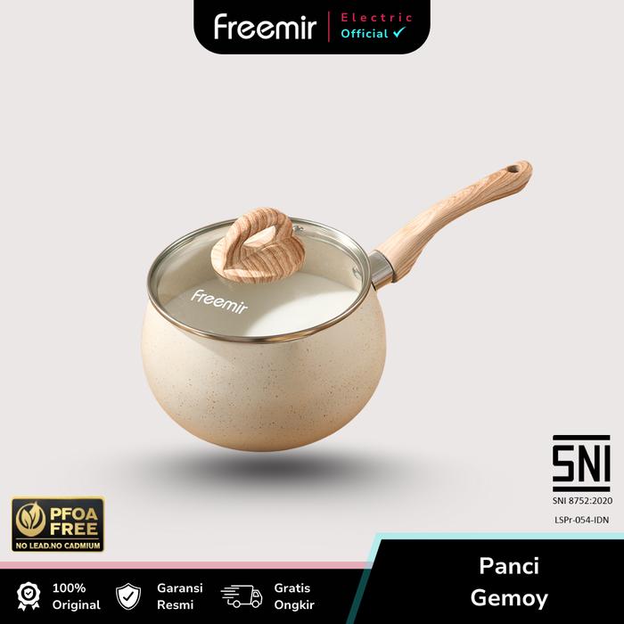 [BARU] freemir Panci Susu Bulat Gemoy Beige 16 CM dengan Tutup Kaca Anti Lengket Double Bottom Multifungsi