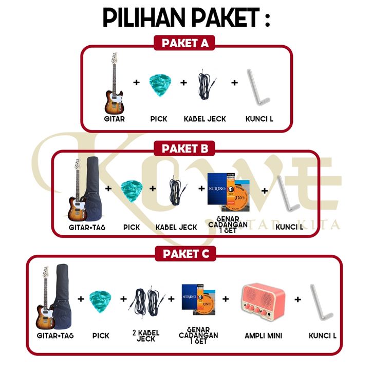 GItar Listrik Merk Kowe Seri TL-THIN 70 Original Free Mini Ampli Joyo JA 02