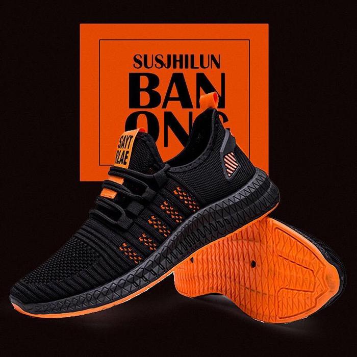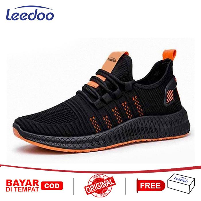 Leedoo Sepatu Sport Pria Casual Sneakers Running Hitam Fashion Shoes Karet MR112