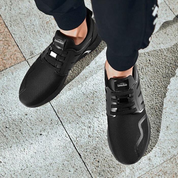 Leedoo Sepatu Pria Sneakers Running Karet Fashion Casual Shoes Kerja Pria Hitam Polos F15