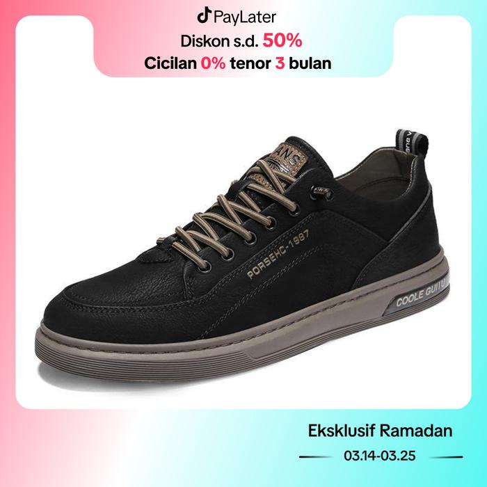 Leedoo Sepatu Tali Hitam Putih Kulit Pantofel Pria Formal dan Sneakers Sepatu Casual Pria Shoes Karet MC421