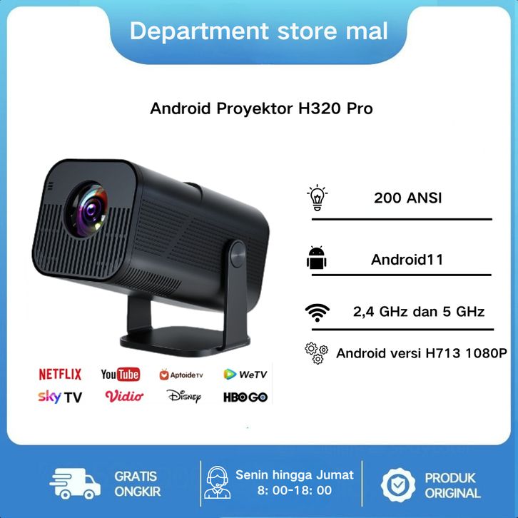 PREMIUM Proyektor Mini HY320 Pro/ HY320/RY008/ Mini Android 11.0 Bluetooth 5.0 200 ANSI Lumens Portabel Sederhana