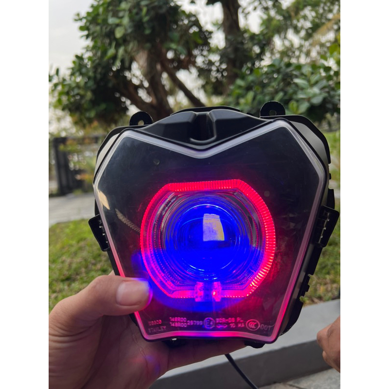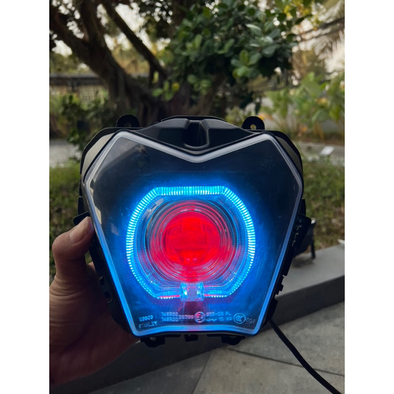 Lampu Depan KLX 2023 Biled Ring Putih Biru Merah