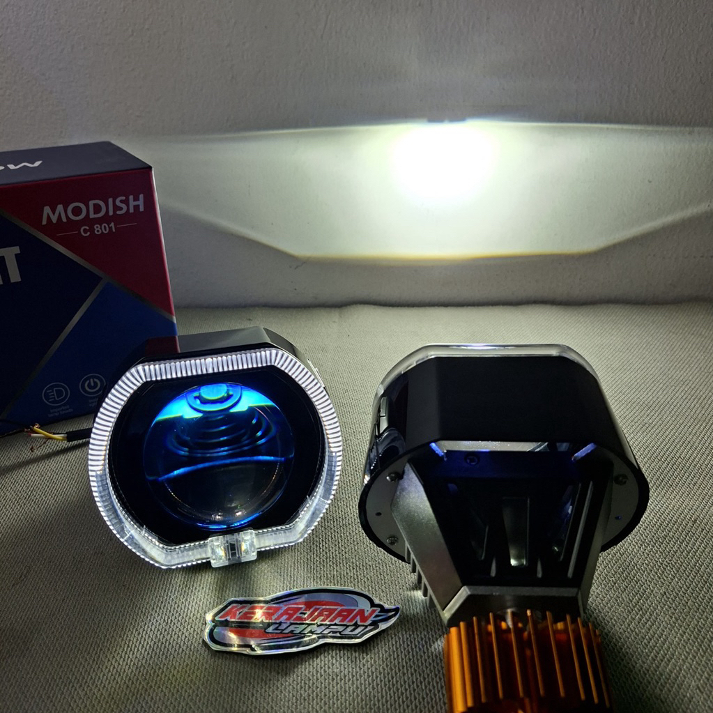 Lampu Biled Projector Asli C01 PRO MODISH Lensa BLUELENS 40 Watt Shroud Hitam 4.5 inc Dengan Kipas Pendingin