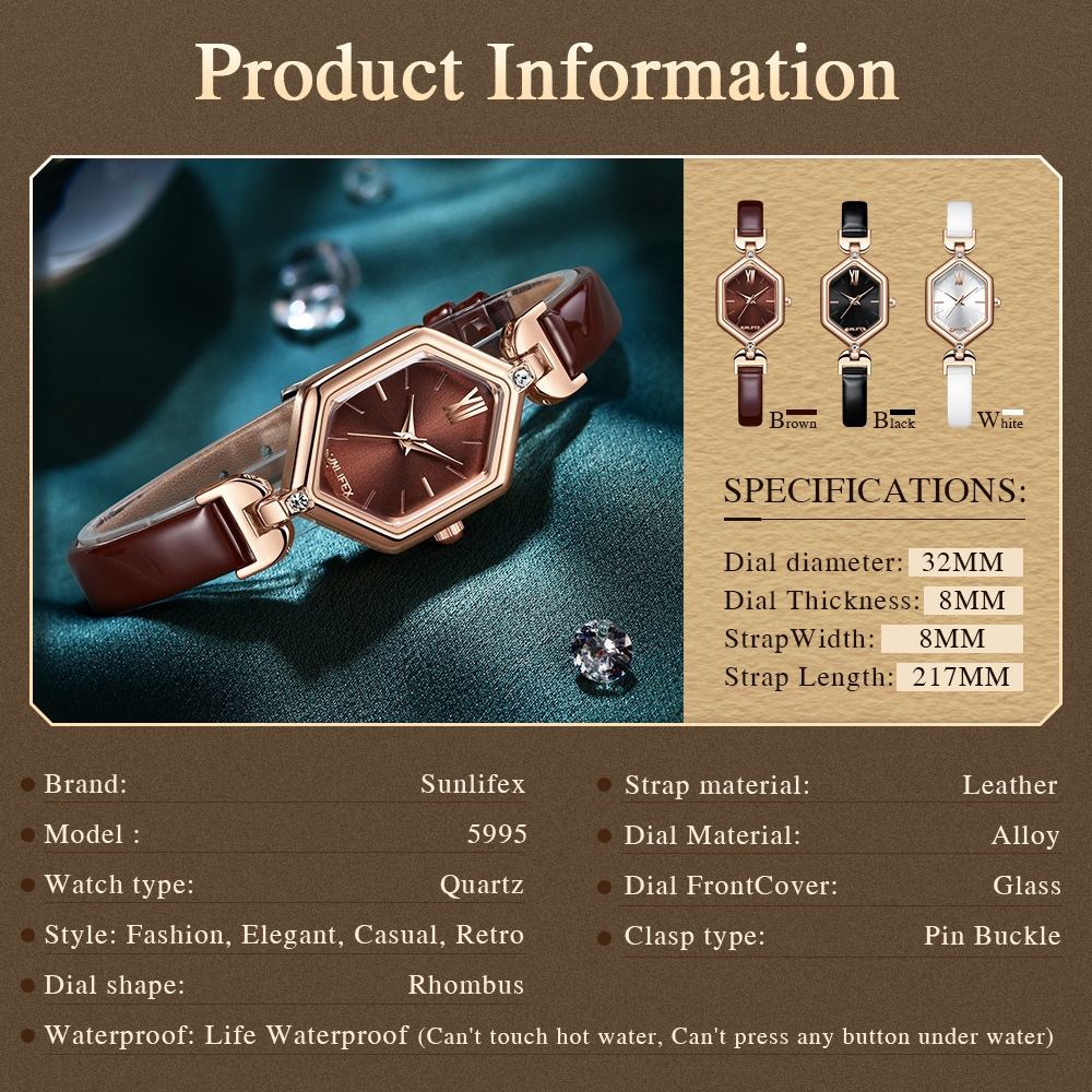 Sunlifex Jam Tangan Wanita Anti Air Kuarsa Elegan Tali Kulit Jam Tangan Cewek Original 5995