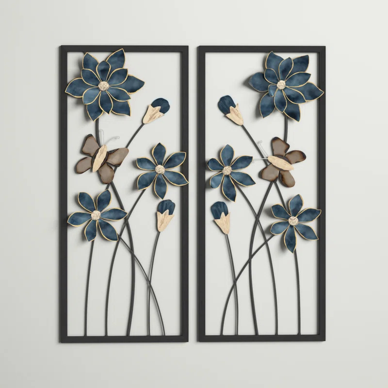 Terbaru Set Isi 2 Hiasan Dinding Besi Butterfly Size 85x31 Derkorasi Rumah Frame Hitam Leaf Gingko