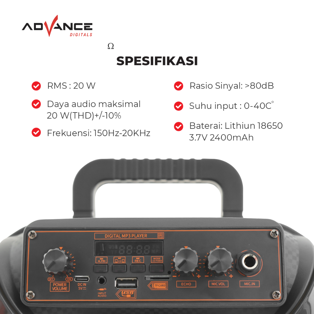 Advance S80 Speaker Portable Bluetooth FREE 1 Microphone Wireless Exrta Power Sound Garansi 1 Tahun