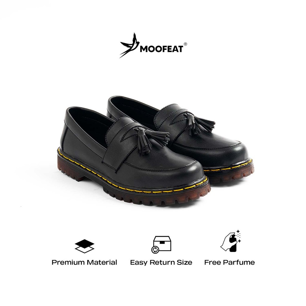 MOOFEAT CHIEF - Sepatu slip on pria boots penny loafers kulit hitam