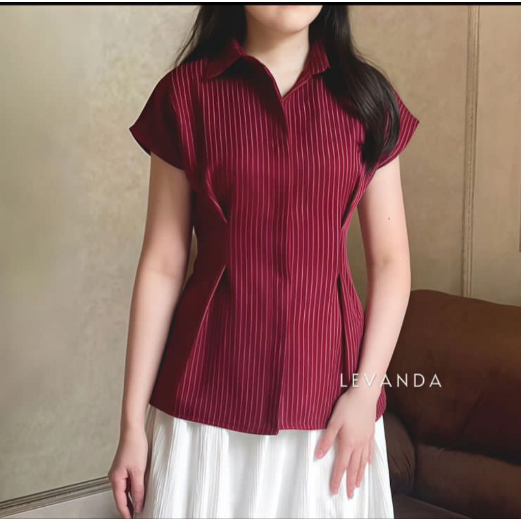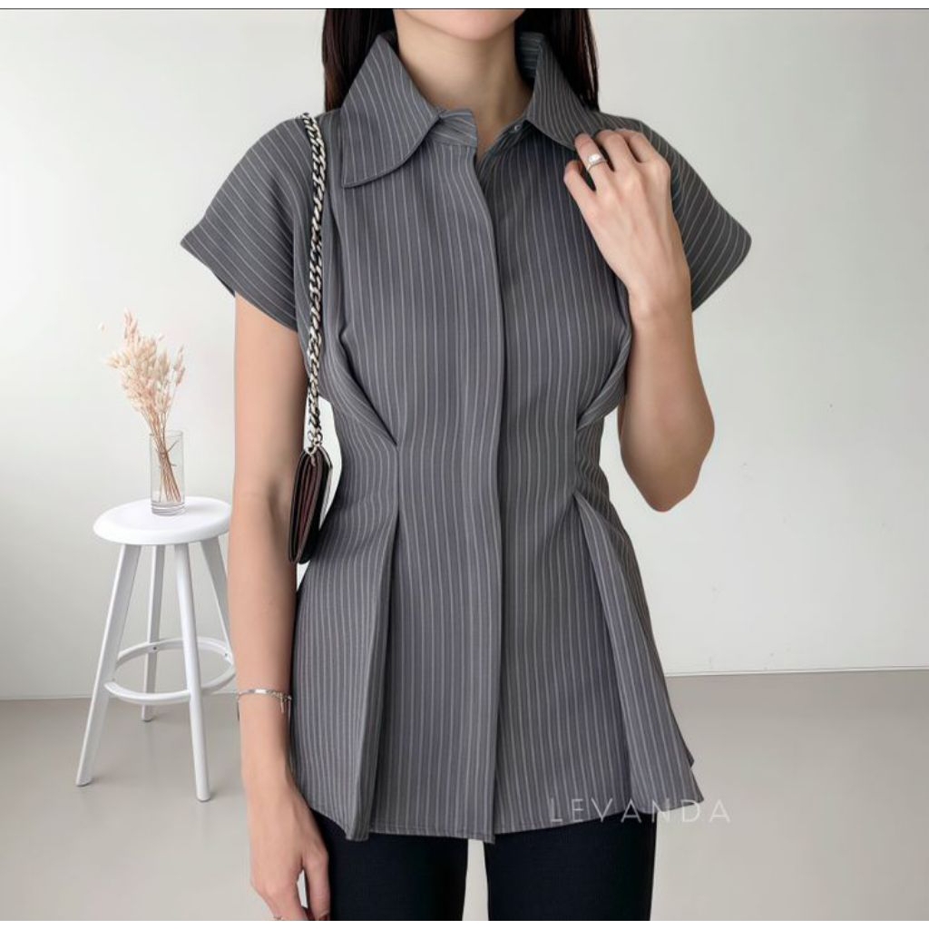 Kemeja Stripe Wanita | Kemeja Salur Wanita Lengan Pendek | Stripe Fitted Stripe