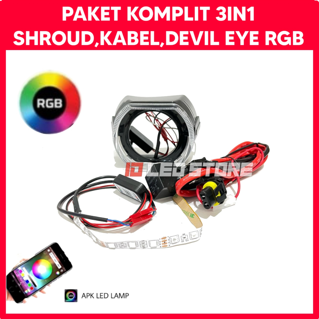 PREMIUM PAKET HEMAT COMBO MURAH 3IN1 RGB SHROUD BMW KLASIK BLACK HOUSING 2.5 INCH + KABEL SUPER RELAY SET BILED