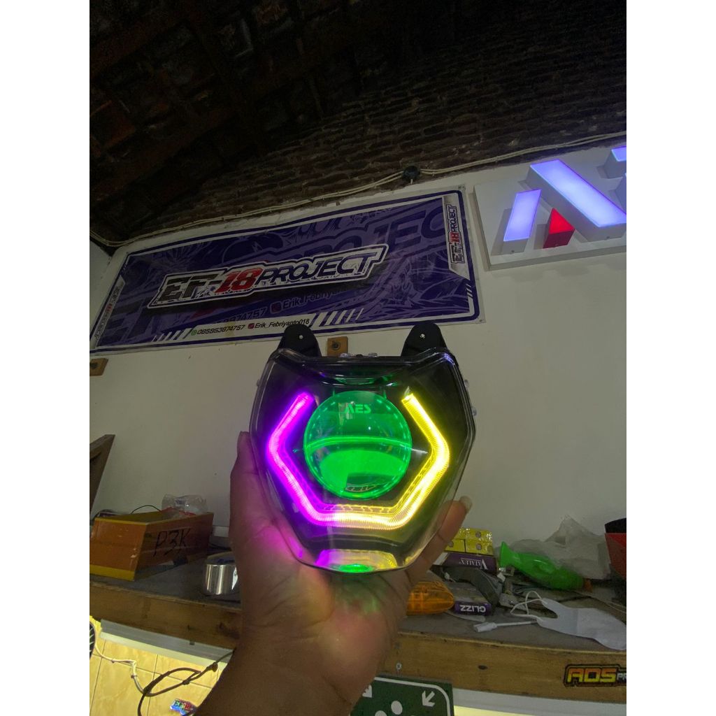 Lampu Biled AES Kustom - Honda CRF, Yamaha WR155, Kawasaki KLX/D-Tracker | Shroud Taichi RGB