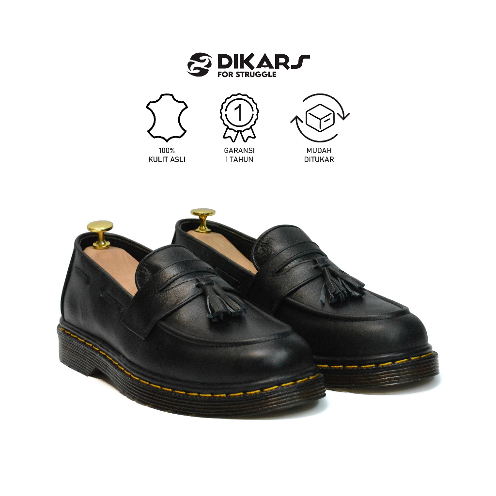 DIKARS - Loafers Slip On Hitam Sepatu Peny Kulit Asli