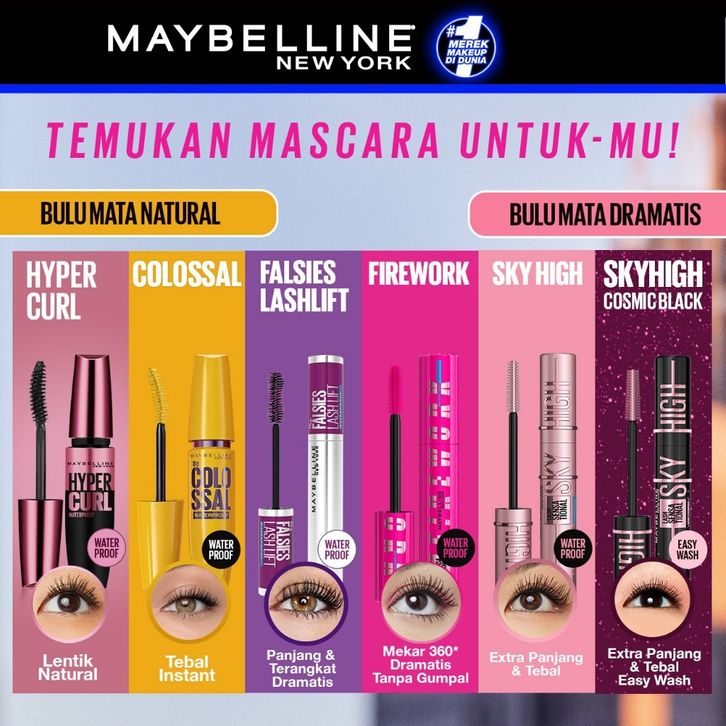 MAYBELLINE The Falsies Lash Lift Mascara Make Up 8.6ml Waterproof Tahan 16 Jam Volumizing Extending Smudgeproof Termurah