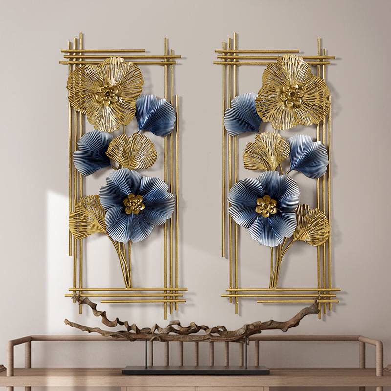 Wall Decor Hiasan Dinding Sepasang Gingko Warna / Pajangan Dinding Gold Metal Color Besi