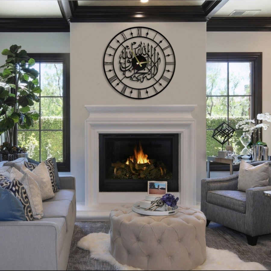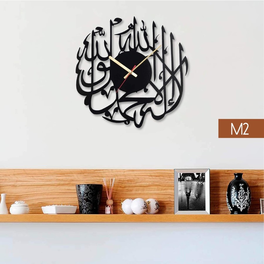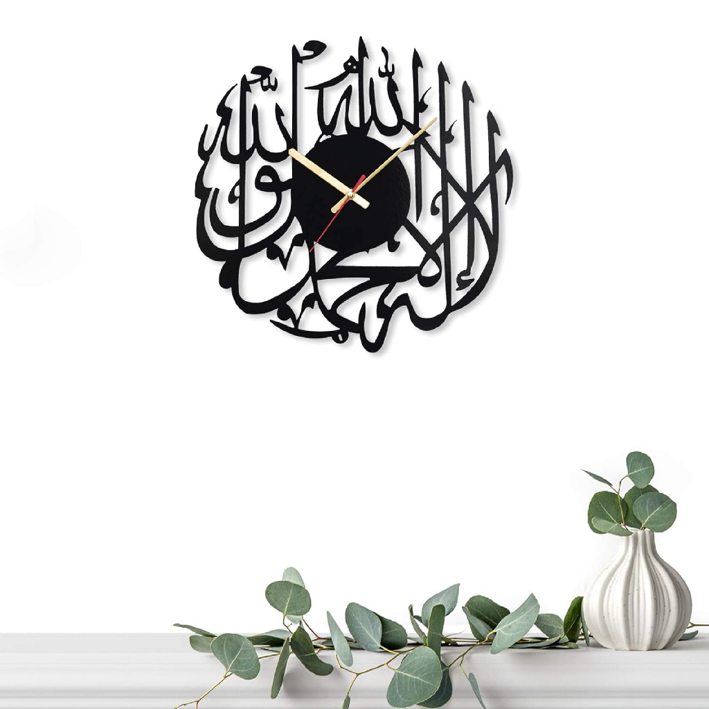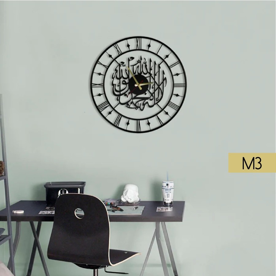 Jam Dinding Kaligrafi Metal Premium Kalimat Shahadat Angka Romawi