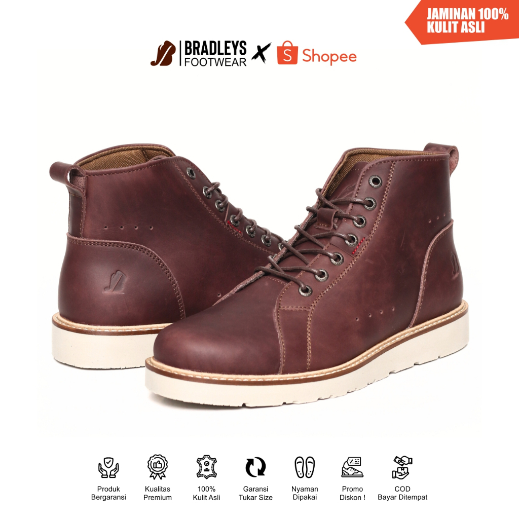 Bradleys Cordovan Series - Sepatu Kulit Kasual Boot Pria Sepatu Boots Pria Bahan Kulit