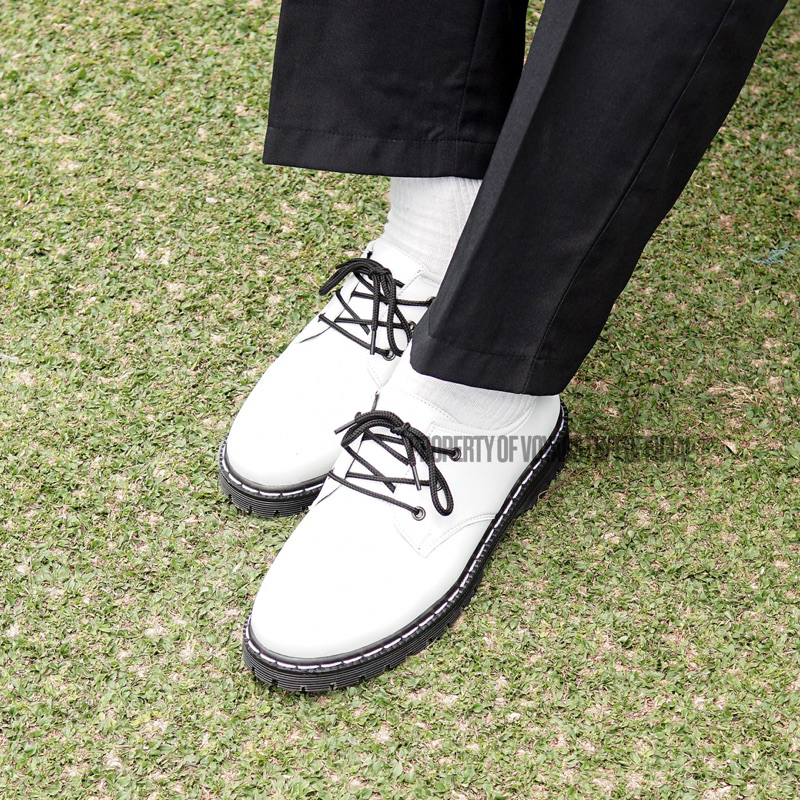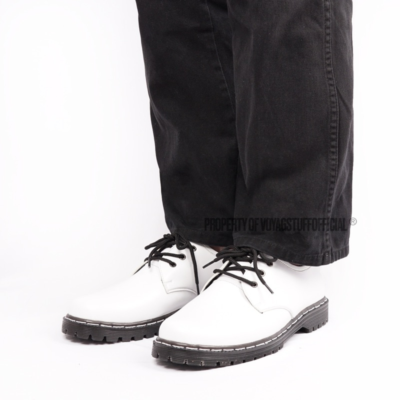 Voyagstuffofficial - Rise Sepatu Formal 3 Hole Boots white Kulit Pria