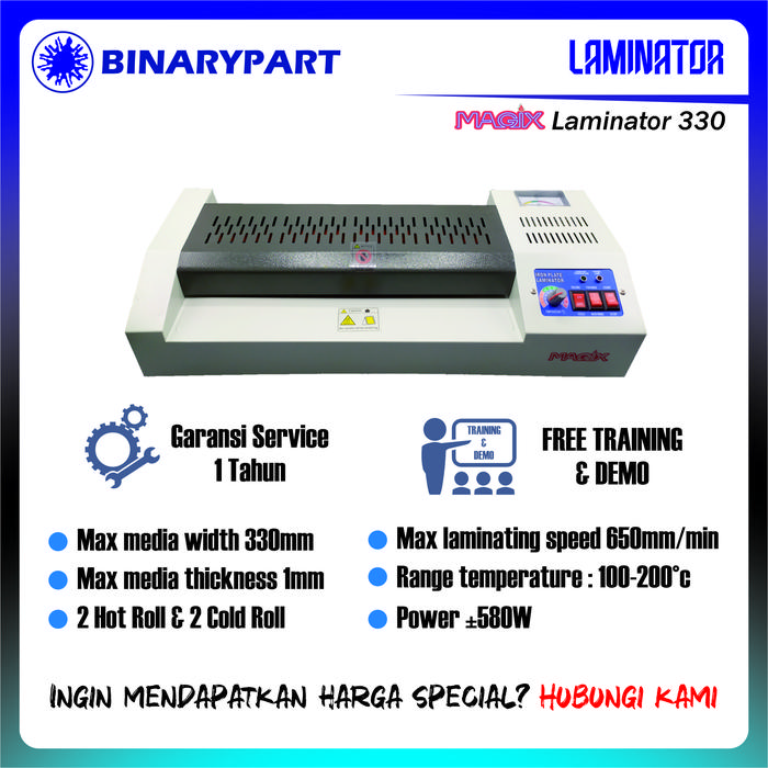 MESIN LAMINATING A3 UNTUK LAMINATING KTP, DOKUMEN, PVC ID CARD, DLL GARANSI 1 TAHUN - MAGIX LAMINATOR 330