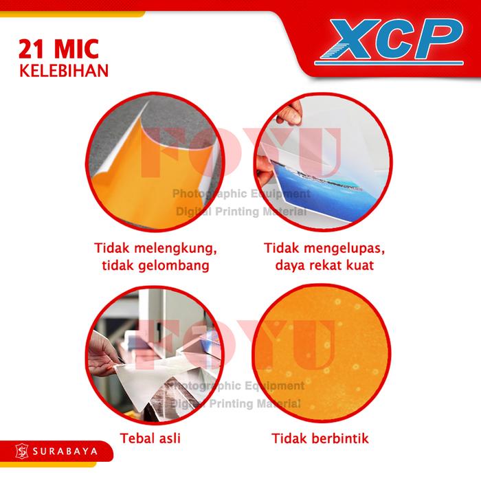 PLASTIK LAMINASI PANAS BOPP THERMAL XCP ROLL 21 MIC 33CM X 150M BLUE MESIN - HIJAU (GLOSSY)