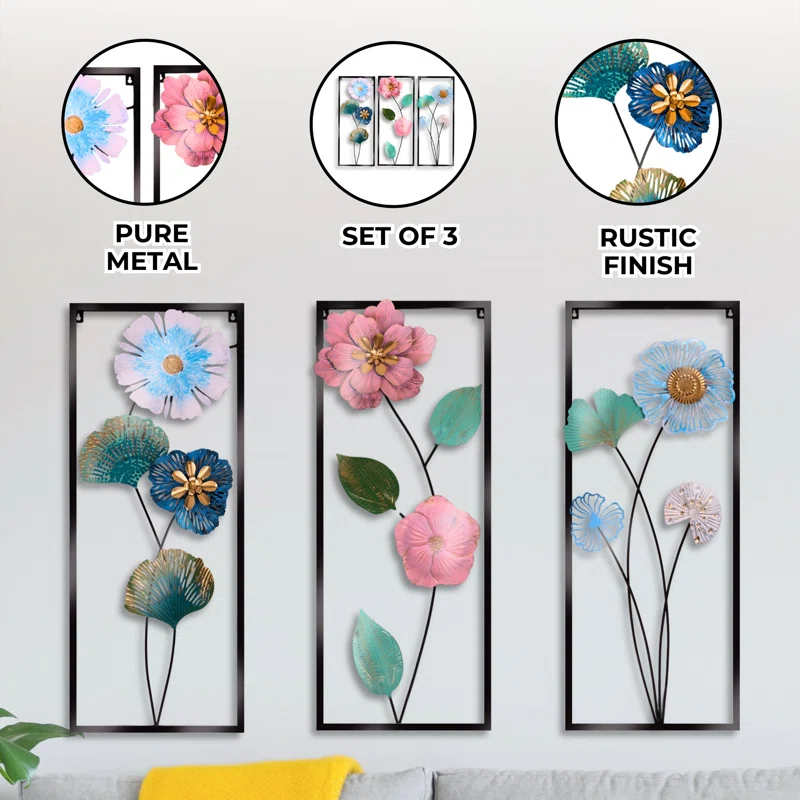 Set Isi 3 Hiasan Dinding Besi 85x31 Dekorasi Kamar Tidur R Tamu & Kantor Wall Decor Nordic