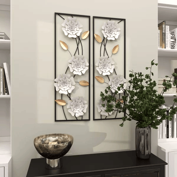 Terbaru 1 Set Isi 2 Hiasan DInding Besi Metal 85x31 Cm Dekorasi Kamar Ran Rumah Leaf Gingko
