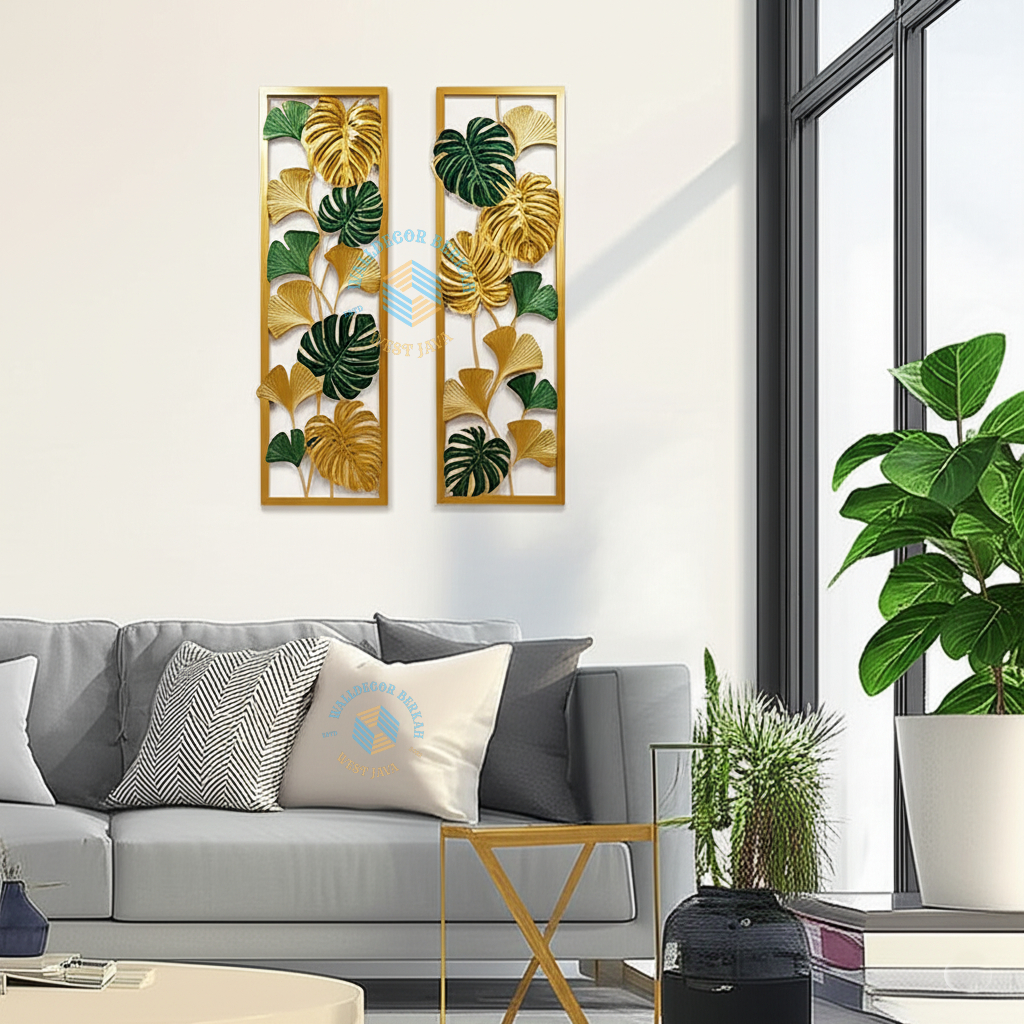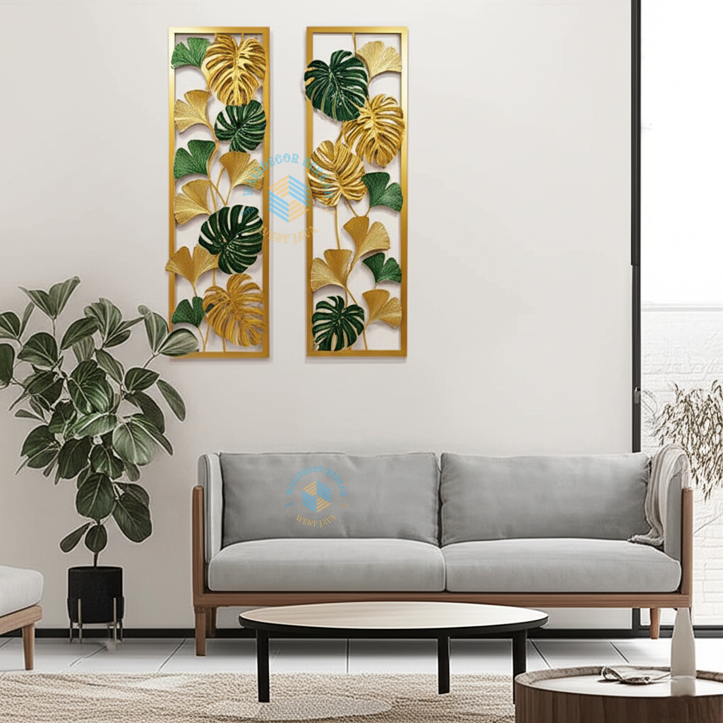 Walldecor Berkah Set Isi 2 Hiasan Dinding Besi Aesthetic 110*30 Cm Dekorasi Frame Metal Gold Mewah