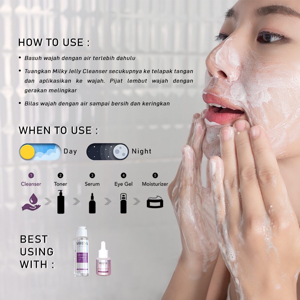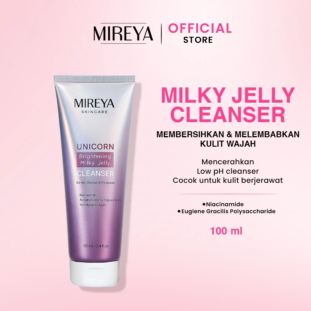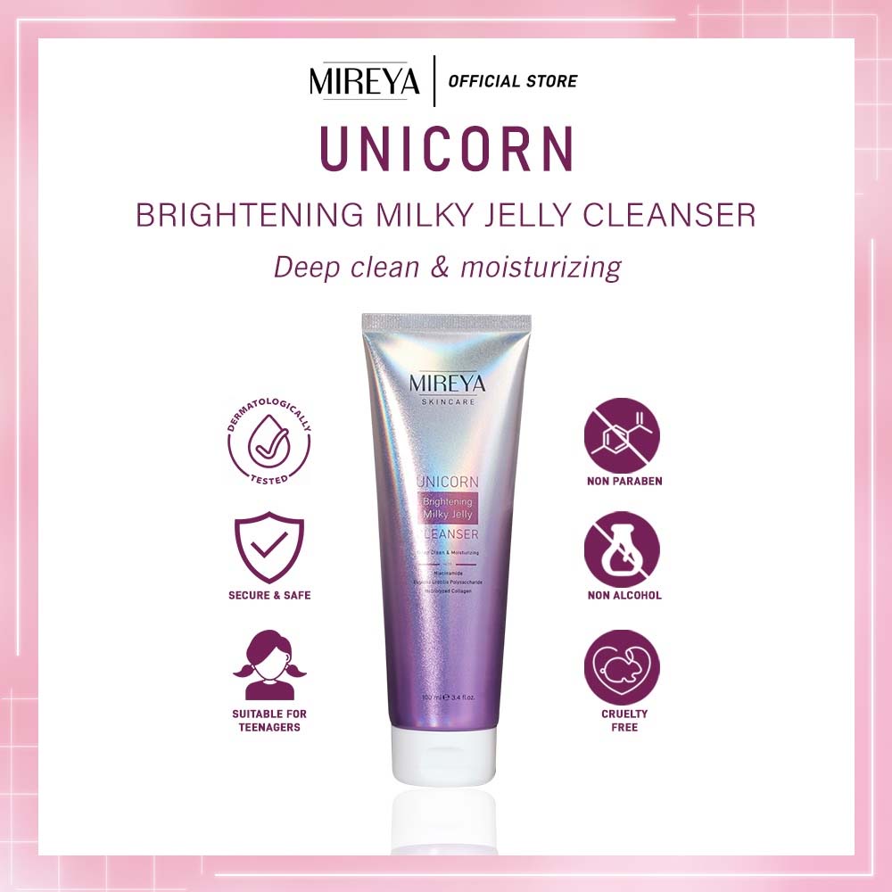 Mireya Unicorn Brightening Milky Jelly Cleanser 100ml – facial Wash dengan Kandungan Niinamide untuk Membersihkan,