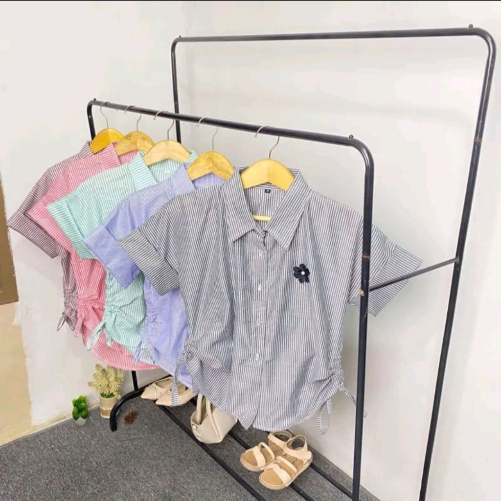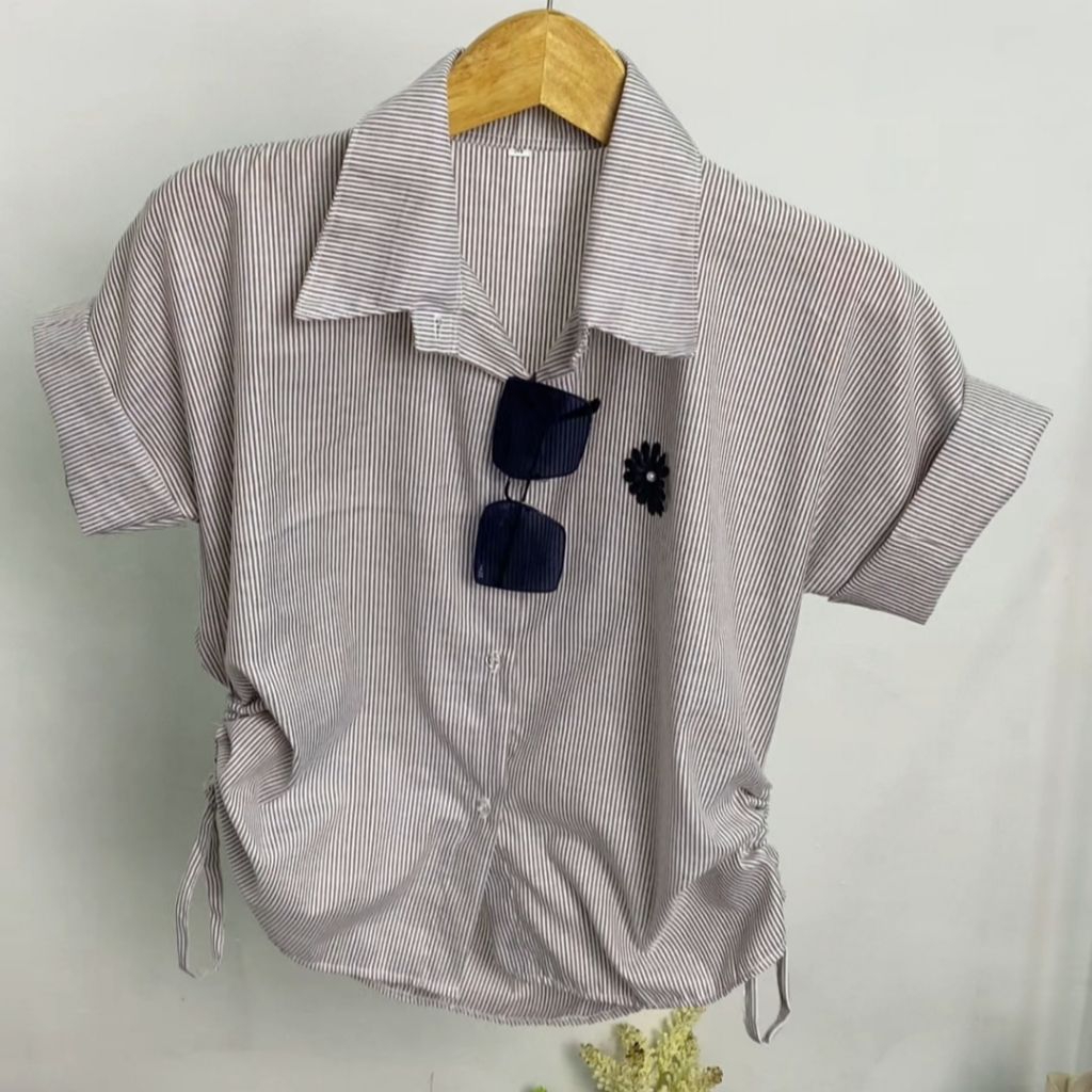 ANNARA STRIPES SHIRT - Kemeja Wanita Kekinian Lengan Pendek Kemeja Salur Wanita