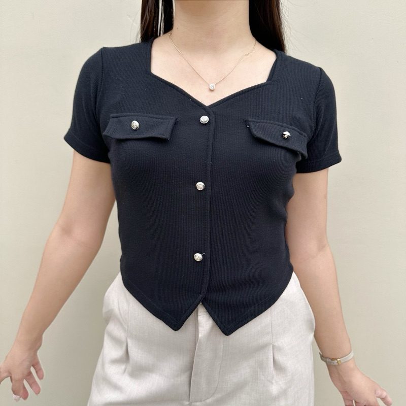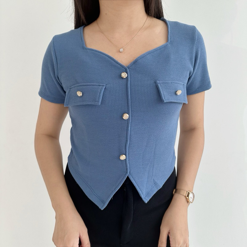 ENMEI Gebby Top 928 - Crop Top Wanita - Atasan Blouse Wanita - Kaos Korean Crop Bahan Knit