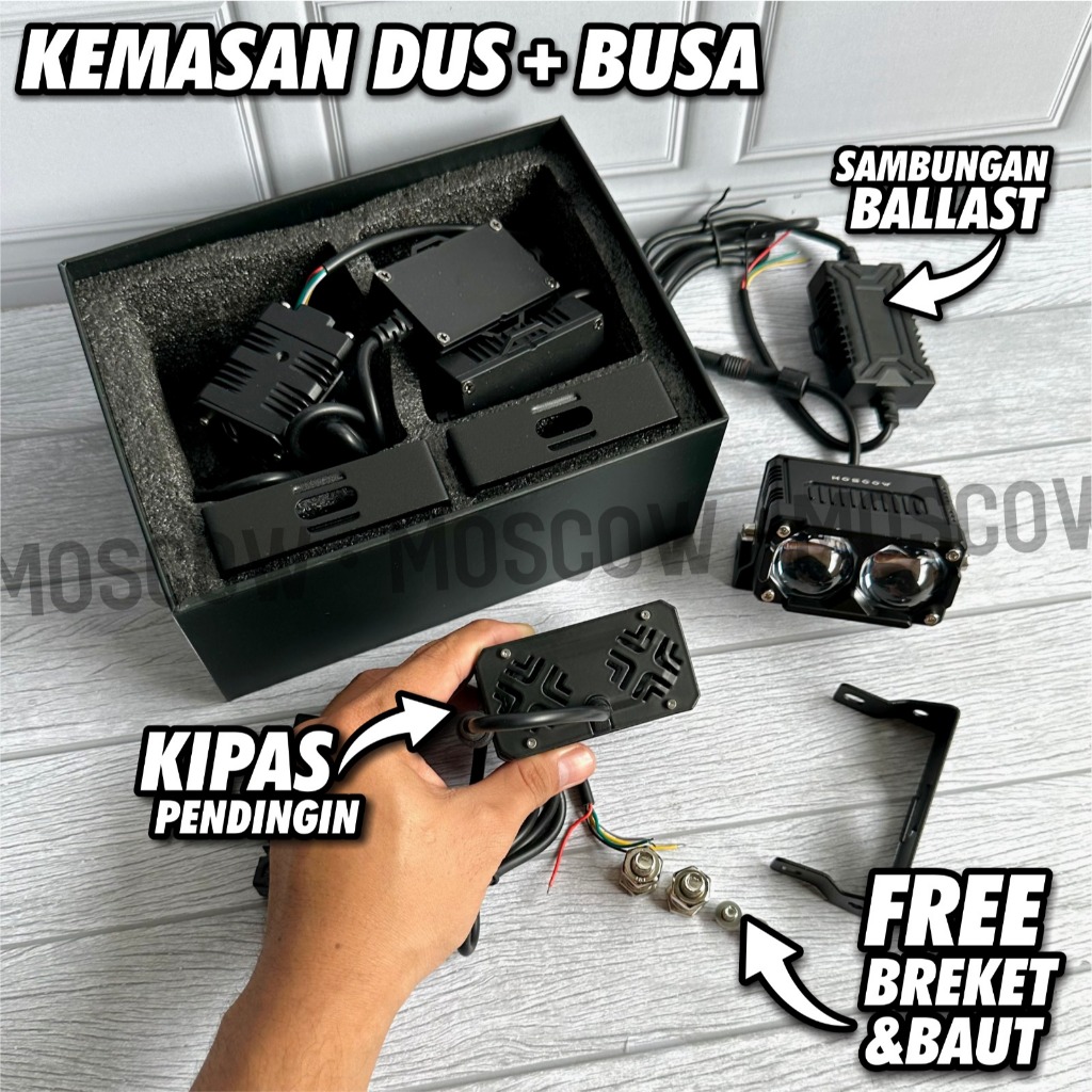 2pcs LAMPU TEMBAK SOROT SQL 2 MATA LED LENSA LASER GUN KIPAS 2 WARNA KUNING PUTIH 55 WATT PER LAMPU 12-90V ORIGINAL MOSC