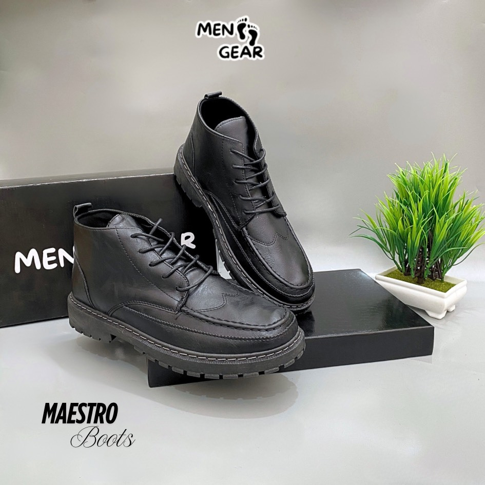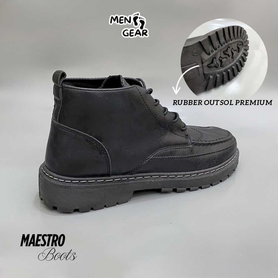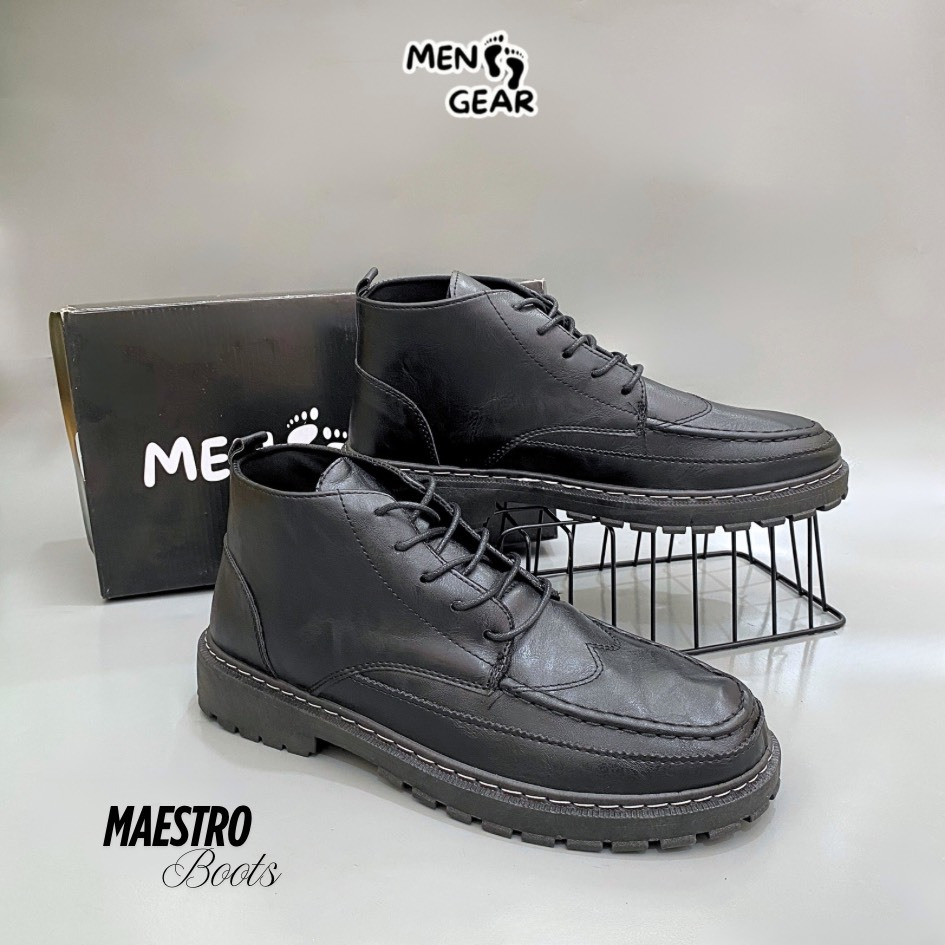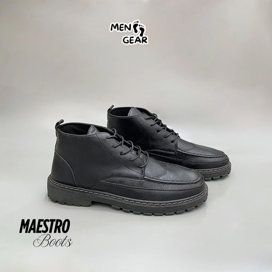 MENFOOTGEAR Maestro Sepatu Boots Pria Formal Kerja Kulit Sintetis Sepatu Cowok Keren Hitam