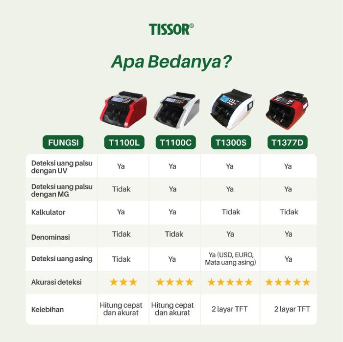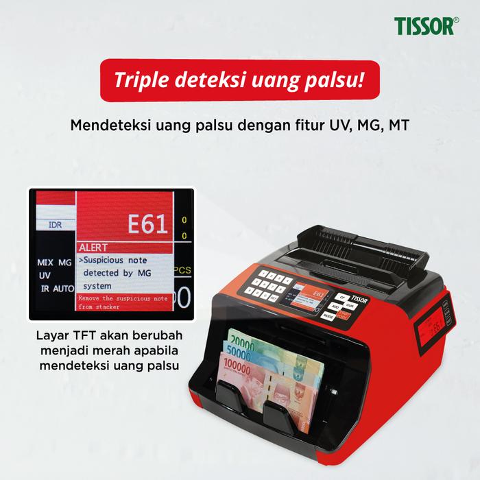 TISSOR - T1377D MONEY COUNTER - MESIN HITUNG UANG DUAL SCREEN - DETEKSI UANG PALSU UV, MG, MT